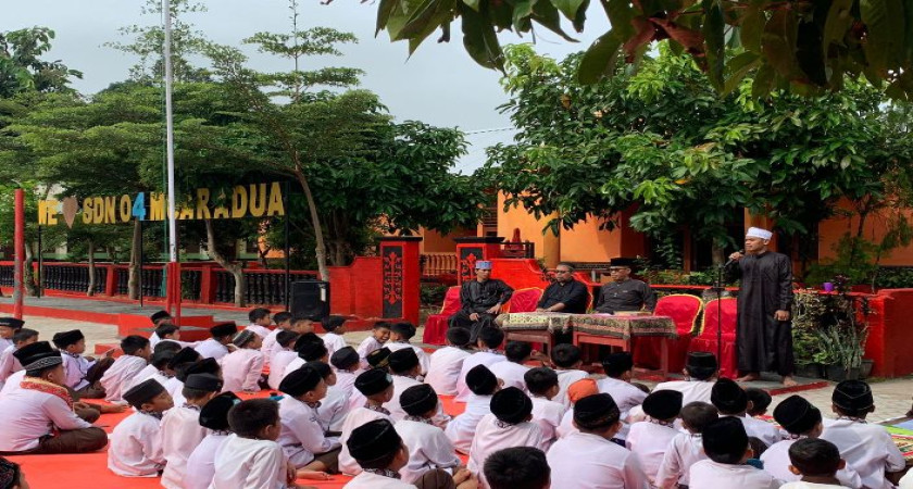 UPT SD NEGERI 04 MUARADUA. Suasana pagi penuh khidmat menyelimuti UPT SD Negeri 04 Muaradua. Semua guru menggunakan pakain muslimin dan muslimah, begitu juga dengan peserta didik kelas I s.d VI menggunakan pakaian yang sama, dalam rangka memperingati Isra Mi’raj Nabi Muhammad SAW 1446 H. Kegiatan tersebut dilaksanakan di lapangan upacara UPT SD Negeri 04 Muaradua. Jumat, 31 Januari 2025.